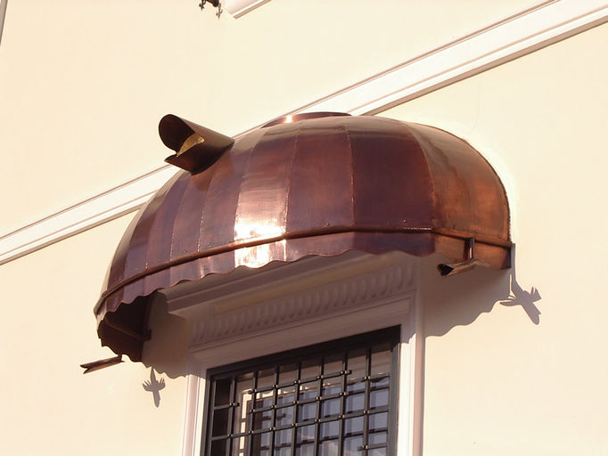 Colore struttura: Rame Martellato; Colore copertura policarbonato: . Galleria fotografica Pensiline in Rame – LATTONERIA FRANCHINI di Franchini Armando di Genova.